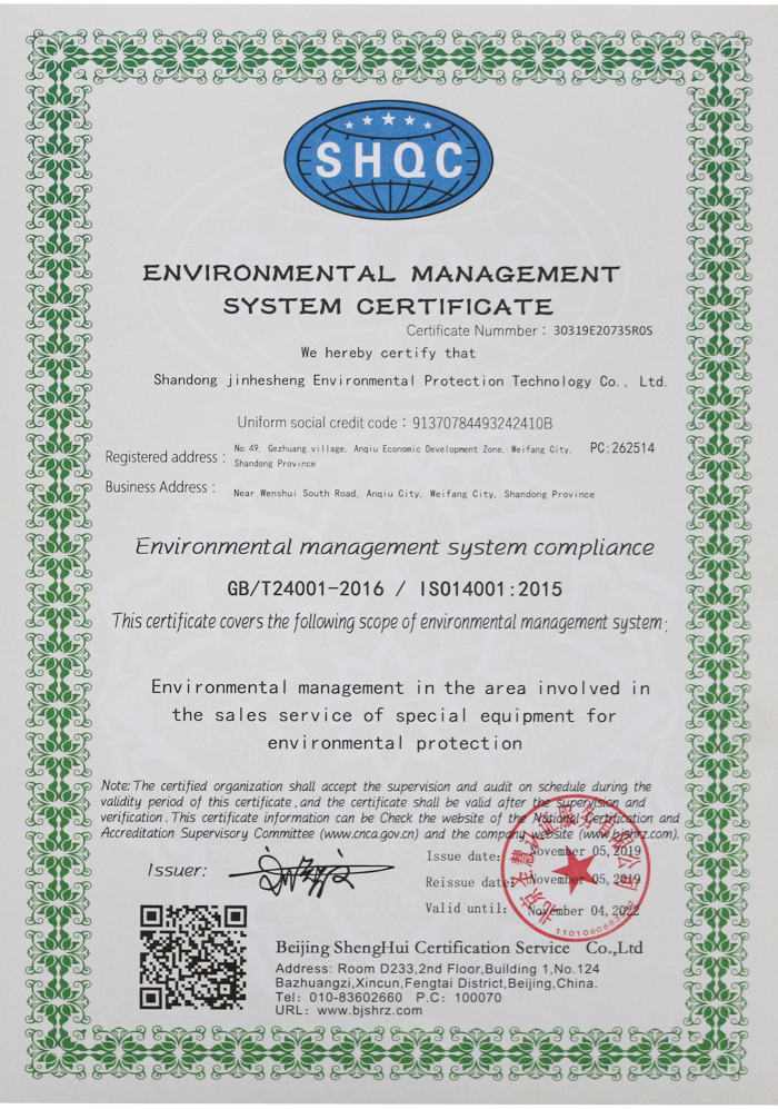 环境管理体系认证证书